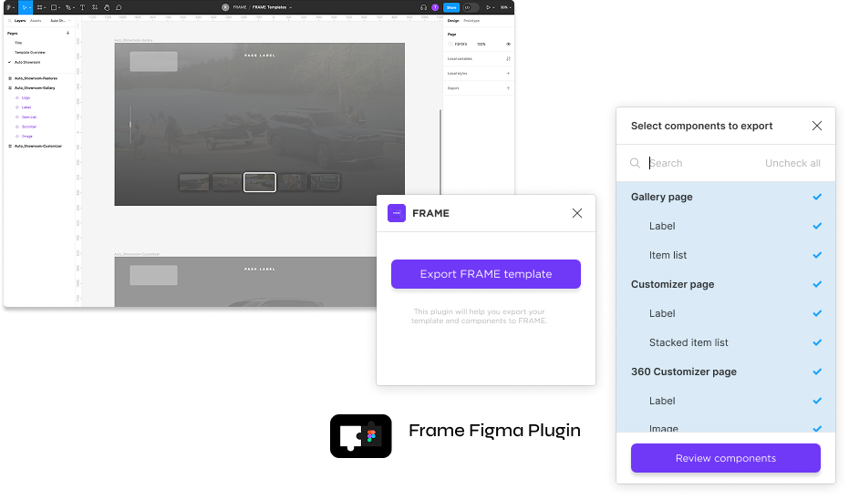 FRAME is thoughtfully designed to leverage any existing design tooling, such as FIGMA, to enable dynamic template creation.